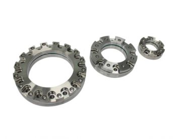 - High-precision Differential Pumped Rotary Feedthrough has improved the precision and rigidity of compact differentially pumped rotary feedthrough by using high-precision crossed roller bearing. The bearing can be mounted directly to rotary and stationary stages without any fixing plates and housing. As a result, it is possible to increase the thickness of the bearing or the size of the rolling elements in the bearing, while the feedthrough performance is almost entirely unaffected by the installation of the bearing. Thus, in the compact space it is allowed to install a precise optical encoder, which can provide position feedback together with a worm gear system driven by a servo motor, so the feedthrough can be controlled with extremely high precision. The larger ball bearings improve the rigidity of the UHV rotary drive.