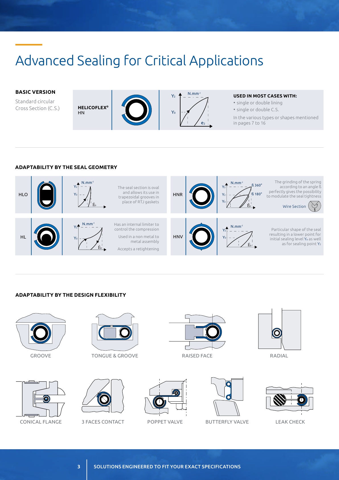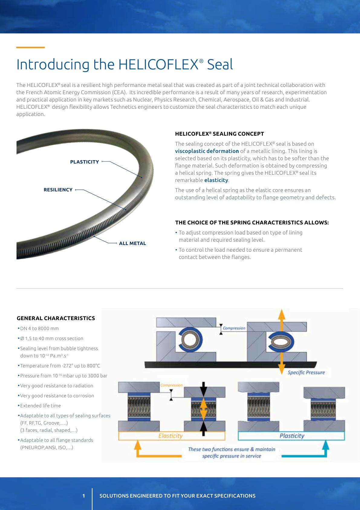- HELICOFLEX® Seal is used in an extreme environment such as cryogenic, high temperature, ultrahigh pressure and high vacuum, which is impossible in an existing seals, and has an excellent sealing force even when a flange is deformed by pressure and temperature change by the action of a Helical Spring contained in an O-ring. Among Metal Seals, HELICOFLEX® Seal has the best sealing power, vacuum, and sealing level along with Ultra-Flex Seal. In particular, it provides a solution to problems such as corrosion and oxidation caused by fluorine gas in the field of semiconductors and displays.
